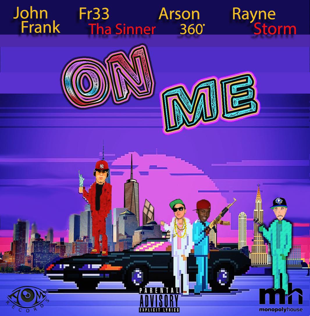 Eye Am Records / Monopolyhouse recording artist John Frank releases his debut single “On Me” featuring an all star team of New York rappers including Fr33 Tha Sinner, Arson360 and Rayne Storm who also serves as the tracks producer. The track is uptempo, yet still manages to be just a street as it is rhythmic with each artist delivering they own style. It would play just as hard in a club as it would driving down your favorite highway with the windows down. With an addictive chorus and feel good vibe in the face of haters, this song is a great way to blast off the New Year!